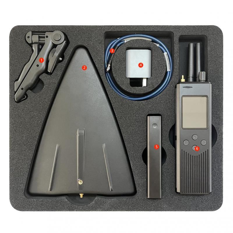 Handheld UAV detection and direction finding equipment is used for UAV detection and direction finding. Based on spectrum sensing and artificial intelligence technology, the image transmission link of UAV is identified and classified. The equipment features include: detection of UAVs with a wide range of frequency bands and various types; the feature library can be upgraded; Perform direction finding to obtain the position of the drone.