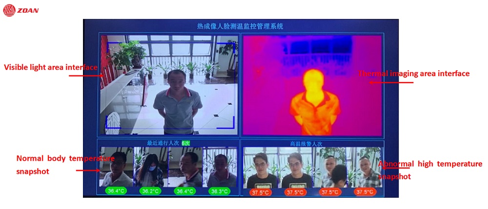 8. HDMI direct output preview video, real-time display of the number of passers-by and abnormal temperature